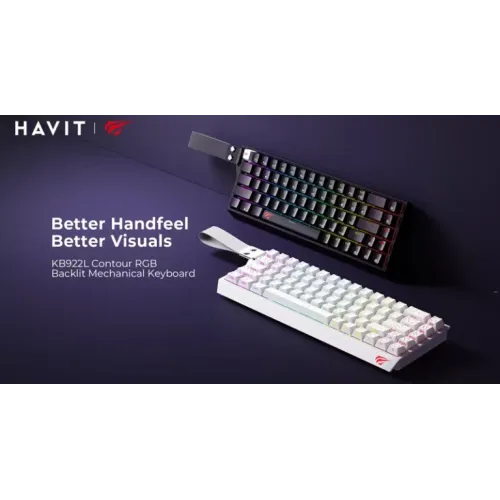The Havit KB922L RGB Mechanical Keyboard is a premium choice for gamers, typists, and professionals seeking a compact yet powerful keyboard solution. Featuring an efficient 68-key layout, this keyboard saves valuable desk space while retaining all essential functionality, making it ideal for minimalist setups or small workstations. Built with Contour PBT keycaps, it offers superior durability and comfort compared to standard ABS keycaps, ensuring a long-lasting and enjoyable typing experience. With full key rollover technology, every keystroke is registered accurately, delivering smooth gaming performance and fast typing sessions without input lag. The customizable RGB backlit system provides vibrant multi-mode lighting effects, allowing users to personalize their setup with stunning visuals that match their style. Engineered for a better handfeel and enhanced tactile response, the Havit KB922L combines aesthetics with performance to elevate both productivity and gaming. Designed for reliability, it boasts an impressive 50 million keystroke lifespan, ensuring durability for years of heavy use. This Havit wired keyboard is both portable and practical. Operating at 5V with 220 mA current, it guarantees stable performance. Whether you’re a gamer looking for precision or a professional seeking comfort, the Havit KB922L Contour Mechanical Keyboard delivers the perfect balance of style, functionality, and reliability.