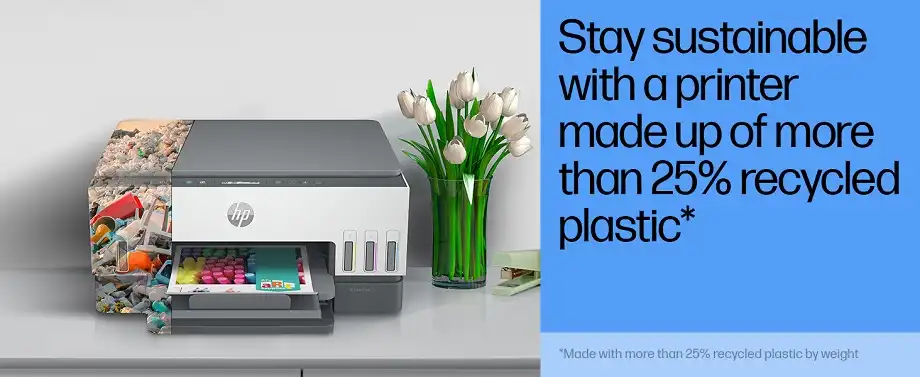 Choose a sustainable option with the HP Smart Tank 670, made from 25% recycled plastic. Reduce your environmental footprint while enjoying reliable performance.