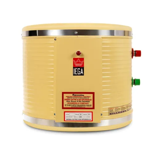 The IEGA 45 Liter Floor Mount Geyser is a robust and efficient water heating solution designed for multi-storied buildings with a maximum working head of 60 feet. It features a dual immersion heating system silver-coated and copper elements each equipped with a 100% safety thermostat for reliable performance. The adjustable thermostat control ranges from 30°C to 80°C, ensuring personalized comfort, while the built-in temperature and pressure relief valve rated at 125 PSI or 210°F adds an extra layer of safety. Engineered for durability, the IEGA 45 Liter geyser includes a zinc-coated rust-proof tank, pressure-tested for leakproof assurance, and a scratch- and rust-resistant mild steel outer jacket with high-gloss baked paint. With a 45-liter (10-gallon) capacity, 19-inch height, and operating on 220–240 volts at 1200 watts and 5.45 amps, this IEGA 45 Liter geyser delivers consistent hot water with style and safety, making it an ideal choice for residential and commercial use.