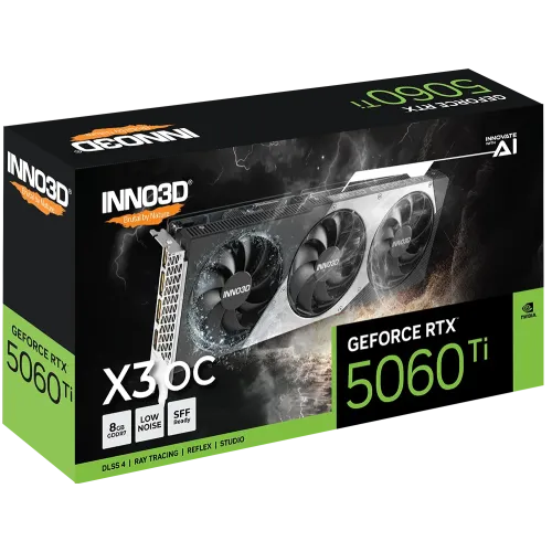 The INNO3D GeForce RTX 5060 Ti 8GB X3 OC Graphics Card is a next-generation GPU designed for gamers and creators who want powerful performance, AI-enhanced features, and efficient cooling in a modern setup. Built on NVIDIA’s latest Blackwell architecture, this graphics card introduces advanced capabilities like DLSS 4, real-time ray tracing, and AI-driven performance optimization, making it a strong upgrade for high-end gaming and creative workloads. This model comes equipped with 4608 CUDA cores, a boost clock of up to 2602MHz, and 8GB of GDDR7 memory on a 128-bit interface, delivering high bandwidth performance of up to 448 GB/s. The new GDDR7 memory significantly improves speed and efficiency compared to previous generations, enabling smoother gameplay, faster rendering, and better multitasking for demanding applications. For gaming performance, the RTX 5060 Ti is built to handle modern AAA titles with high settings, especially when combined with DLSS 4 and Multi Frame Generation, which use AI to boost FPS while maintaining visual quality. It also supports full ray tracing with dedicated 4th-generation RT cores, providing realistic lighting, shadows, and reflections for a more immersive experience. Additionally, NVIDIA Reflex 2 helps reduce system latency, giving competitive gamers faster response times. Cooling and design are also key highlights of the X3 OC variant. It features a triple-fan setup with optimized airflow, a copper base for efficient heat absorption, multiple heat pipes, and a durable metal backplate for better thermal performance and stability. Despite its powerful cooling system, the card maintains a relatively compact 2-slot design, making it suitable for many mid-sized and even some small form factor builds. In terms of connectivity, the card supports up to four displays with modern ports including 3× DisplayPort 2.1b and 1× HDMI 2.1b, and can handle resolutions up to 8K at 165Hz or 4K at 480Hz with DSC. It requires a minimum 650W power supply and uses a single 8-pin PCIe connector, ensuring stable operation under heavy workloads. Overall, the INNO3D RTX 5060 Ti 8GB X3 OC is a future-ready graphics card that combines strong gaming performance, AI-powered enhancements, and efficient cooling, making it a solid choice for users upgrading to the latest GPU technology for both gaming and creative tasks.