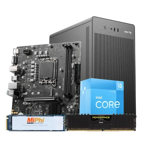 The Intel Core i3-12100 12th Gen Budget Desktop PC is a well-built device that appeals to customers looking for a system that strikes a compromise between price and functionality. The Intel Core i3-12100, a 12th-generation Alder Lake CPU that highlights Intel's cutting-edge hybrid architecture, is the central component of this configuration. With a base clock of 3.3 GHz and a maximum turbo boost capability of 4.3 GHz, this quad-core, 8-thread CPU is a good performer for productivity work, light gaming, and general computing. The MSI PRO H610M-E DDR4 mATX Motherboard, which supports the newest 12th Gen CPUs on an LGA 1700 socket and offers necessary capabilities in a small microATX form size, offers a dependable basis for the construction. A red heat spreader adds style to the construction and helps with heat dissipation. An 8GB stick of Corsair Vengeance LPX 8GB 3200MHz DDR4 Desktop RAM guarantees seamless multitasking and effective access to commonly used data. A MiPhi MP300G3 256GB M.2 PCIe Gen3 NVMe SSD may meet storage demands. With read speeds of up to 2400 MB/s, it keeps the system efficient and delivers quick load times for the operating system and apps. The Value Top TU100M Mid Tower Micro-ATX Casing with PSU, which houses these parts, not only accommodates a range of motherboard sizes but also includes a pre-installed power supply, saving you money and trouble. The case's elegant design contains many fan mounts to keep the system cool even under load and a side panel of glass that displays the interior parts. This desktop PC is a great option for various customers, from professionals to students, who want a powerful computer without going over budget. It is proof that affordable builds can still provide a satisfactory user experience.