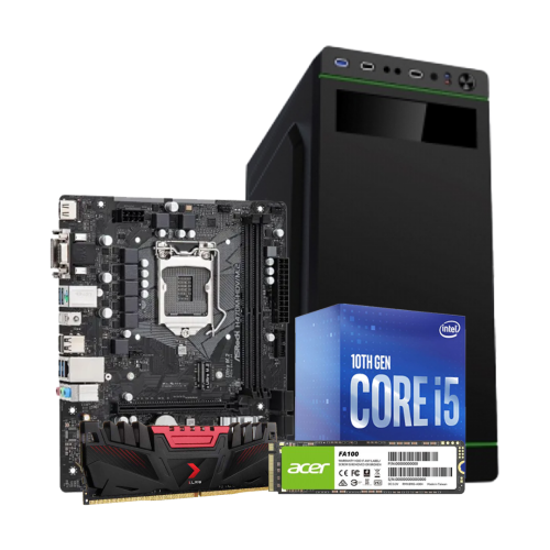 This special desktop PC is built around an Intel 10th Gen Core i5-10400 Processor and an ASRock H470M-HDV/M.2 10th Gen Micro ATX Motherboard. It comes with 8GB of PNY XLR8 DDR4 3200MHz Desktop Gaming RAM and an Acer FA100 128GB M.2 NVMe PCIe Gen3 x 4 SSD for faster boot times. The system is housed in a MaxGreen 5907BG Casing.