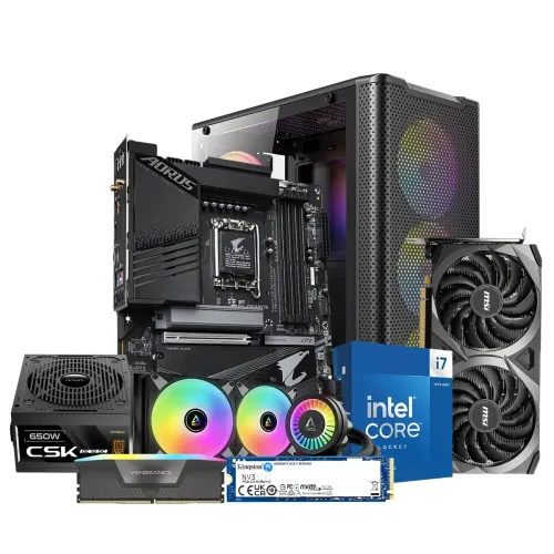 The Intel Core i7 14700K 14th Gen Gaming Desktop PC is built for gamers. At its heart is the Intel Core i7 14700K 14th Gen Raptor Lake Processor, providing the power needed for high-end gaming and multitasking. This system is supported by the GIGABYTE Z790 AORUS ELITE AX ATX Motherboard, ensuring reliable connectivity and support for the latest generation of components. The Corsair VENGEANCE 16GB DDR5 6000MHz CL36 Desktop RAM offers high-speed performance and vibrant aesthetics, making it ideal for gaming and creative tasks. Housed in the Antec CX300 ARGB Full-View ATX Mid Tower Gaming Casing, the PC benefits from excellent airflow and a sleek design. Cooling is managed by the Arctic Liquid Freezer III 280MM ARGB Liquid CPU Cooler, which keeps the system running smoothly and efficiently. Storage is taken care of by the Kingston NV3 1TB M.2 PCIe Gen 4.0 NVMe SSD, providing fast data access and ample space for games and applications. Graphics are powered by the MSI GeForce RTX 3060 VENTUS 2X OC 12GB GDDR6 Graphics Card, delivering high-quality visuals and smooth frame rates for an immersive gaming experience. The system is powered by the Antec CSK 650DC 650W 80+ Bronze Non-Modular Power Supply, ensuring stable and efficient power delivery.