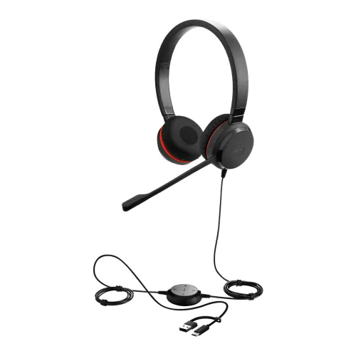 The Jabra Evolve 20 SE Stereo MS USB & Type-C Headset is made for professionals to deliver clear sound, reliable performance, and modern connectivity. The Jabra Evolve 20 SE Stereo MS Headset has an on-ear binaural design that helps people stay focused by blocking out noise and other distractions. The headset has a stereo sound output mode and a frequency response range of 20 to 20,000 Hz, so it can handle both entertainment and communication needs. The Jabra Evolve 20 SE Stereo MS USB & Type-C Headset has a 28 mm diaphragm, 32 Ohm impedance, and 93.6 dB sensitivity. It also has balanced sound that works well for calls, meetings, and music. With its boom microphone and electret condenser technology, it picks up voices clearly. It also has a unidirectional operation mode and noise-canceling ability, so conversations are smooth even in noisy places. The Jabra Evolve 20 SE Stereo MS USB & Type-C Headset includes a microphone frequency response of 100–10000 Hz, which makes sure that voice output sounds natural and accurate. This Jabra Headset is easy to use because it has volume controls on the cable and remote features like mute, volume adjustment, and the ability to answer or stop a call. The headband can be adjusted, and the earpads are made of soft foam, which makes them more comfortable for lengthy periods of time. The Jabra Evolve 20 SE Stereo MS USB & Type-C Headset has two connectors, USB-C and USB-A, so it works with both new and old devices. It has a 2.15-meter cord that lets you move around freely while on the phone or in a virtual meeting. The Jabra Evolve 20 SE Stereo MS USB & Type-C Headset is made of PC/ABS plastic and stainless steel, which makes it strong. It also includes certifications from Microsoft Teams, the FCC, UL, and other groups that assure it will work well.