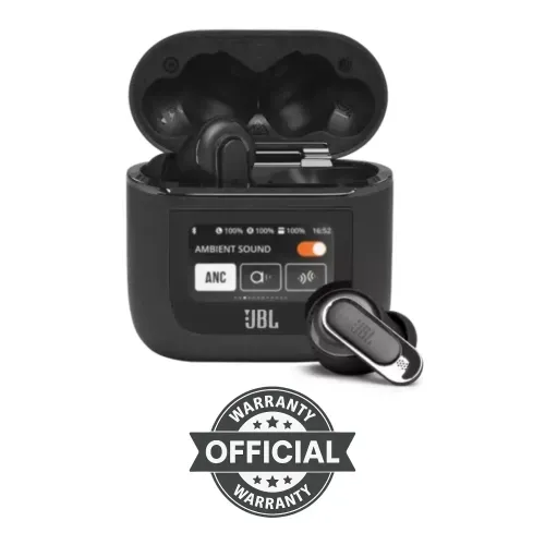 JBL Tour Pro 2 True Wireless Earbuds feature the world's first smart case for a seamless experience. True Adaptive Noise Cancelling technology filters away distractions so you can enjoy your favorite songs in great spatial audio on the fly. The one-of-a-kind smart charging case gives you immediate access to all major earbuds features without the need for a smartphone app. All App functions are accessible via the smart case from non-smartphone devices such as laptops, PCs, televisions, and so on. JBL Tour Pro 2's smart charging case has a 1.45-inch display to control important JBL Headphones App features without using your phone for a totally seamless experience. The revolutionary Bluetooth-enabled smart charging case allows you to immerse yourself in multidimensional audio for up to 40 hours on a single charge. The 6-mic technology of JBL Tour Pro 2 offers outstanding call quality in every situation. Turn on Personal Sound Amplification to increase the loudness of your and others' voices without having to remove your earbuds.