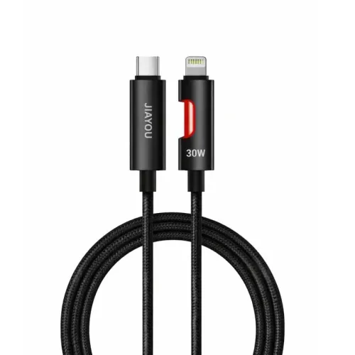 The Jiayou Flash Ultra-8 Type-C to Lightning Cable is designed for Apple users who value speed, durability, and style. With a maximum power output of 30W, it supports fast charging for iPhones, iPads, and other Lightning devices, ensuring efficient performance. The cable features USB-C to Lightning connectivity, So its compatible with modern adapters and laptops. Also supporting stable data sync for seamless transfers. A built-in RGB light charging indicator adds a modern touch, glowing during use to signal active power flow. Measuring 1 meter in length, it provides practical reach for home, office, or travel setups without clutter. The braided exterior enhances durability, and with a 30,000+ bend rating, it withstands daily wear while maintaining a premium look. This combination of strength and design ensures long-lasting reliability. The Jiayou Flash Ultra-8 is not only functional but also visually appealing, offering both charging and syncing capabilities in one compact solution. Jiayou Flash Ultra-8 Cable is engineered to meet the needs of users who demand performance and convenience for ragular basis use.