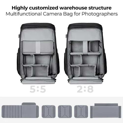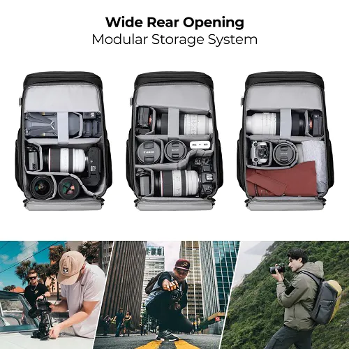 The K&F Concept KF13.128V4 Multifunctional Camera Backpack is a premium, high-capacity backpack designed for photographers, videographers, and drone enthusiasts who need reliable storage and easy access to their gear. Boasting a 25L capacity with dimensions of 11.4 x 7 x 17.5 inches, it provides ample space to carry cameras, lenses, drones, tripods, and accessories, while a dedicated laptop compartment securely fits laptops up to 16 inches. The backpack features customizable padded dividers, allowing users to organize their equipment safely and flexibly according to individual setups, ensuring maximum protection during transport. Constructed from waterproof and durable materials, the KF13.128V4 safeguards your valuable gear in all weather conditions, while its ergonomic design, including padded shoulder straps and a breathable back panel, delivers exceptional comfort for long-duration use. With dual-access openings from both the top and side, photographers can quickly retrieve their camera for spontaneous shots, making it ideal for travel, outdoor adventures, and professional shoots. Additional features such as anti-theft zippers, side tripod straps, and secure compartments enhance safety and convenience. Perfect for professional photographers, hobbyists, and drone operators, the K&F Concept KF13.128V4 Camera Backpack combines versatility, protection, and comfort, making it an essential choice for anyone seeking a reliable and multifunctional photography backpack.