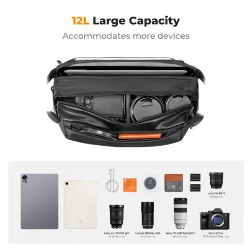 The K&F Concept KF13.177 Waterproof Camera Side Bag is engineered for photographers who demand durability, comfort, and quick access during shoots. This premium K&F Concept KF13.177 Shoulder Camera Bag offers a large-capacity interior with 3 layers of compartments and fully padded, adjustable dividers, allowing you to organize a DSLR or mirrorless camera with 3–4 lenses, plus batteries, filters, memory cards, and accessories. Built from high-quality waterproof and wear-resistant materials, the K&F Concept KF13.177 Camera Side Bag ensures superior protection against rain, splashes, and outdoor elements, while its double zipper design enhances security and smooth operation. The quick-access side-opening feature and sling-style build let you swing the bag forward for instant camera retrieval, perfect for capturing spontaneous moments without slowing down. With its ergonomic padded shoulder strap, breathable back panel, and adjustable sternum strap, this bag provides exceptional comfort during long photography sessions or travel. Additional highlights include flexible interior compartments, an external tripod holder for compact travel tripods, and a sleek, modern design that suits both professional work and casual outings. Whether you're shooting landscapes, portraits, or traveling, the K&F Concept KF13.177 Camera Bag delivers the ideal balance of protection, accessibility, and style.