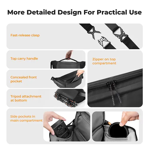 The K&F Concept KF13.212 Waterproof Shoulder Camera Bag is the ultimate solution for photographers seeking durable, versatile, and travel-ready gear protection. Designed with a 10L capacity, this K&F Concept KF13.212 Shoulder Camera Bag easily accommodates a DSLR or mirrorless camera, 1–2 lenses, camera accessories, and even a tablet, making it ideal for city photography, travel adventures, or daily shooting. Its flexible interior layout with customizable dividers allows you to organize your equipment precisely to your needs, while the quick-access side zipper ensures that your camera is always ready for the perfect shot without having to remove the bag. Constructed from waterproof, weather-resistant, and scratch-resistant fabric, the K&F Concept KF13.212 Sling Camera Bag protects your gear from rain, splashes, dust, and accidental bumps, offering superior safety in all conditions. The ergonomic sling and shoulder design, complete with a wide adjustable strap and extra chest strap, guarantees comfortable all-day wear, even during long shoots or while exploring new locations. Additionally, the anti-theft back pocket keeps your phone, wallet, passport, and other valuables secure on the go. With versatile carrying options as a sling, shoulder, or crossbody bag, the K&F Concept KF13.212 Camera Bag combines convenience, security, and professional-level protection, making it a must-have for photographers who want quick access, organized storage, and reliable gear safety wherever they go.
