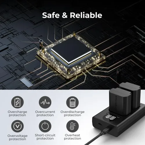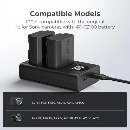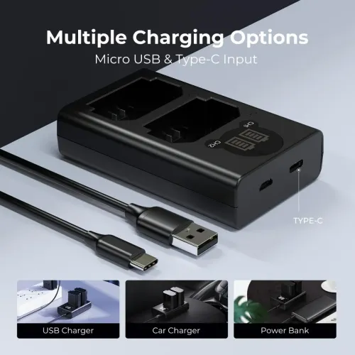 The K&F Concept NP-FZ100 Dual Slot Camera Battery Charger is a dependable and easy-to-use charging solution for Sony mirrorless cameras. The K&F Concept NP-FZ100 Dual Slot Camera Battery Charger is designed with standard compatibility in mind, supporting Sony NP-FZ100 batteries used in popular models such as the Alpha A7 III, A7R III, A7R IV, A9, A9 II, and A6600, assuring broad usability for professionals and hobbyists alike. With its clear LCD digital display, the K&F Concept NP-FZ100 Camera Battery Charger allows customers to quickly monitor charging progress with a four-level indicator that displays the real-time power status of each battery while charging. This function increases confidence and convenience, particularly during hectic filming schedules. The K&F Concept NP-FZ100 Battery Charger is designed for efficiency, with a dual-slot design that allows you to charge two batteries at once, saving time and keeping your camera ready for action. The K&F Concept Camera Battery Charger's incorporation of both micro-USB and Type-C connectors makes it extremely versatile and compatible with modern power sources. Charge batteries using a laptop, desktop PC, wall charger, car charger, or even a power bank, making it suitable for studio work, travel, and outdoor shoots. The K&F Concept NP-FZ100 Dual Slot Camera Battery Charger excels in terms of safety. It includes six innovative protection features to prevent overcharging, short circuits, excessive temperatures, overcurrent, overvoltage, and electronic shock.