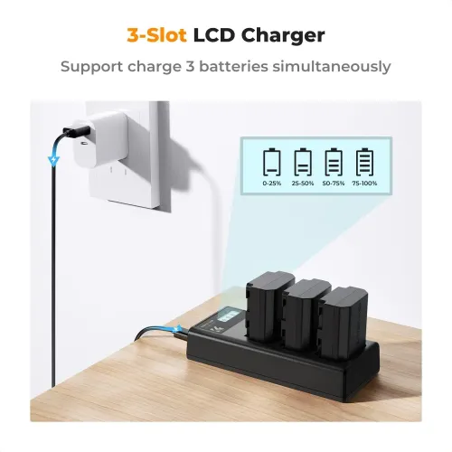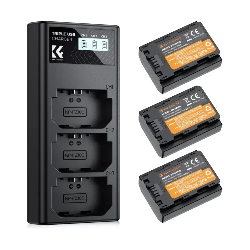 The K&F Concept NP-FZ100 2280mAh Camera Battery and Three Slot Charger Kit is an excellent choice for Sony camera users. This high-capacity battery kit is ideal for photographers and videographers who require dependable performance during extended projects. It is designed to be fully compatible with Sony cameras such as the A7 III, A7R III (A7R3), A9, A6600, and others. The K&F Concept NP-FZ100 Camera Battery has 2280mAh of power, allowing you to record more moments without worrying about your battery running out. This set comprises three K&F Concept NP-FZ100 2280mAh Camera Batteries, which provide long-lasting power to meet your shooting requirements. The triple-slot USB-C charger can charge one, two, or all three batteries at the same time, making charging more efficient and offering visible LED status indicators. The clever LCD display indicates the charging state in real time, allowing you to conveniently track your progress. The charger supports a variety of charging methods, including wall, automobile, and mobile charging, making it ideal for on-the-go use. The K&F Concept NP-FZ100 2280mAh Camera Battery features several circuit protections to prevent overcharging, overcurrent, high temperatures, and short circuits. This innovative protection system protects the safety and dependability of your equipment, even during lengthy and demanding shoots. The high-quality cells used in the K&F Concept NP-FZ100 Camera Battery are thoroughly examined to ensure that they meet high requirements. Whether you are a professional or an enthusiast who uses Sony cameras such as the A7 III, A7R IV, A9 II, or FX3, the K&F Concept NP-FZ100 2280mAh Camera Battery Kit provides dependable, long-lasting performance.