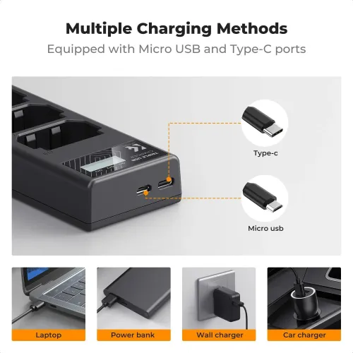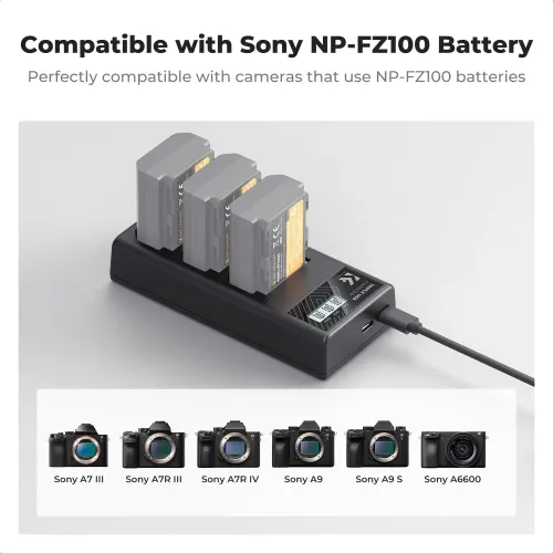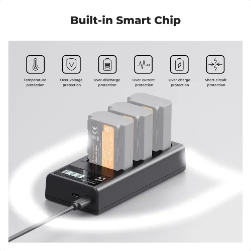 The K&F Concept NP-FZ100 3-Slot Camera Battery Charger is a dependable and easy-to-use charging solution for Sony mirrorless cameras. The K&F Concept NP-FZ100 3-Slot Camera Battery Charger is designed with standard compatibility in mind, supporting Sony NP-FZ100 batteries used in popular models such as the Alpha A7 III, A7R III, A7R IV, A9, A9 II, and A6600, assuring broad usability for professionals and hobbyists alike. With its clear LCD digital display, the K&F Concept NP-FZ100 Camera Battery Charger allows customers to quickly monitor charging progress with a four-level indicator that displays the real-time power status of each battery while charging. This function increases confidence and convenience, particularly during hectic filming schedules. The K&F Concept NP-FZ100 Battery Charger is designed for efficiency, with a 3-Slot design that allows you to charge two batteries at once, saving time and keeping your camera ready for action. The K&F Concept Camera Battery Charger's incorporation of both micro-USB and Type-C connectors makes it extremely versatile and compatible with modern power sources. Charge batteries using a laptop, desktop PC, wall charger, car charger, or even a power bank, making it suitable for studio work, travel, and outdoor shoots. The K&F Concept NP-FZ100 3-Slot Camera Battery Charger excels in terms of safety. It includes six innovative protection features to prevent overcharging, short circuits, excessive temperatures, overcurrent, overvoltage, and electronic shock.