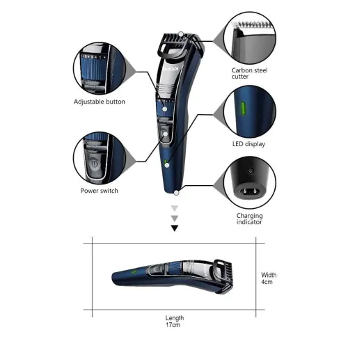 The Kemei KM-632 Trimmer features sharp stainless steel blades with titanium coating, ensuring precise cutting and long-lasting durability for regular grooming needs. Kemei Trimmer offers a trimming range from 0.5mm to 10mm, allowing users to achieve different styles with accuracy and control. Kemei Trimmer includes 20 adjustable length settings, giving flexibility to maintain various beard and hair lengths easily. Kemei KM-632 Trimmer is designed with an ergonomic body that ensures comfortable handling during extended grooming sessions without strain. Kemei Trimmer uses a low-noise motor that provides smooth operation while reducing unwanted sound during use. Kemei KM-632 Trimmer supports both beard and moustache trimming as well as full hair clipping, making it a versatile grooming tool. Kemei Trimmer is suitable for men who need a dependable device for daily or occasional grooming tasks. Kemei Trimmer offers a fast charging system with a charging time of around 2 hours for convenient usage. Kemei Trimmer provides up to 45 minutes of runtime, allowing sufficient time for complete grooming sessions without interruption. Kemei KM-632 Trimmer ensures consistent cutting performance with minimal pulling, improving comfort and efficiency during use. Kemei Trimmer combines durability, precision, and ease of use, making it suitable for beginners and experienced users alike.