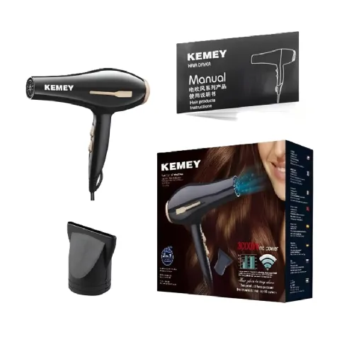 The Kemey KM-2376 1000W Hair Dryer is a flexible style appliance that combines efficiency, safety, and convenience for your daily hair care regimen. With its 1000-watt motor, it provides gentle yet effective airflow that assures speedy drying without inflicting significant heat damage, so it's suited for daily usage on a variety of hair types. This KM-2376 device has both hot and cold air functions, allowing users to simply switch between settings for maximum styling flexibility, whether they want to dry rapidly or lock in a hairstyle. The availability of two heat settings allows customers to modify the temperature based on their hair's thickness, texture, or sensitivity. Built-in overheat protection prioritizes safety by preventing the dryer from reaching harmful temperatures during extended sessions, resulting in consistent performance. The infrared heating element improves drying efficiency by uniformly spreading heat, eliminating frizz, and producing smoother, shinier results. The Kemey KM-2376 operates on electricity and supports a voltage range of 220-240V and a frequency of 50Hz, meaning it's compatible with ordinary household outlets in many locations. Its nozzle design incorporates air collecting scattering technology, which focuses airflow for precise style while preserving coverage for larger drying requirements, providing both targeted and general drying options. This hair dryer is lightweight and easy to use, making it ideal for both home and travel.The Kemey KM-2376's intelligent engineering provides a combination of performance, safety, and simplicity, thereby providing an excellent choice for anyone looking for a reliable hair dryer with modern features and daily usability. The Kemey KM-2376 stands out as a trusted alternative for creating smooth, styled, and healthy-looking hair because to its gentle drying power, numerous heat options, and improved safety features.