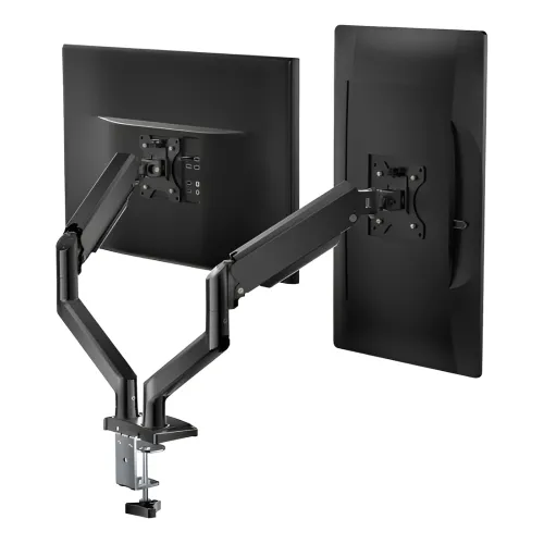 The Lenovo Services AM210 BK Double Monitor Arm is a durable and ergonomic mounting solution designed to support dual displays while maximizing desk space and comfort. Built with strong steel and aluminum construction, this double monitor arm can hold two monitors up to 32″ each, with a weight capacity of 9 kg per arm, ensuring stability and compatibility for both professional and home office setups. The Lenovo Monitor Mount offers flexible adjustability with a tilt range of ±45°, swivel range of ±90°, and screen rotation of ±180°, allowing users to position each monitor independently for the perfect viewing angle. With VESA mount compatibility (75×75 mm and 100×100 mm), installation is simple and secure across most standard monitors. Designed to reduce clutter and improve posture, the Lenovo Double Monitor Arm helps create a clean, organized, and efficient workstation. Overall, the Lenovo AM210 BK Double Monitor Arm combines strength, versatility, and ergonomic design, making it an excellent choice for professionals, gamers, and multitaskers who want a reliable and space‑saving dual monitor mounting solution.