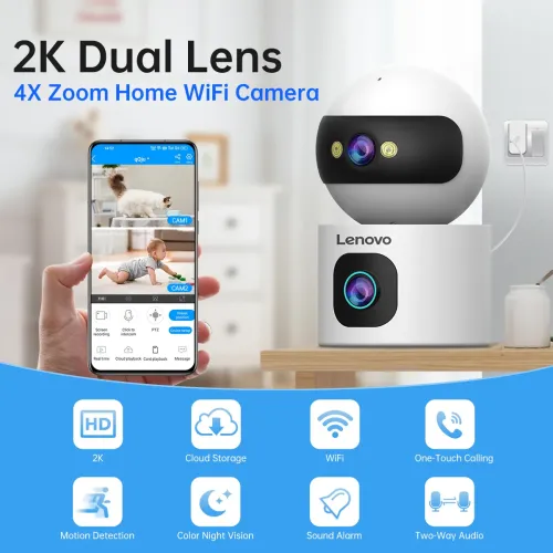 The Lenovo XW1-U WiFi Camera featuring dual 3MP sensors, captures clear and detailed footage from multiple perspectives. The Lenovo Dual Lens WiFi Camera combines 3 Megapixel plus 3 Megapixel resolution for sharper images and wider coverage. With 355 degree horizontal and 90 degree vertical rotation, the Lenovo XW1-U WiFi Camera ensures flexible pan and tilt monitoring. Built in microphone and 1W speaker enable real time two way audio communication. The Lenovo WiFi Camera supports sound detection for responsive alerts in dynamic environments. Advanced motion detection enhances security by accurately identifying movement and triggering instant notifications. Alarm mode provides APP push notifications and sound alarms for immediate awareness. The Lenovo XW1-U 3MP Dual Lens Pan & Tilt WiFi Camera offers IR distance up to 10 meters. Built in IR CUT dual filter ensures seamless day and night switching for consistent clarity. H.265 video encoding improves storage efficiency while maintaining high quality video output. Dual stream support allows optimized viewing and recording performance. The Lenovo XW1-U WiFi Camera supports TF card and cloud storage options. It accepts memory cards from 8GB to 256GB for flexible storage capacity. Weighing only 226 grams, the Lenovo WiFi Camera is lightweight and easy to install. This Lenovo WiFi Camera is ideal for homes, offices, and small businesses seeking reliable surveillance. Lenovo XW1-U 3MP Dual Lens Pan & Tilt WiFi Camera delivers dependable performance, intelligent monitoring features, and user friendly operation for everyday security needs.