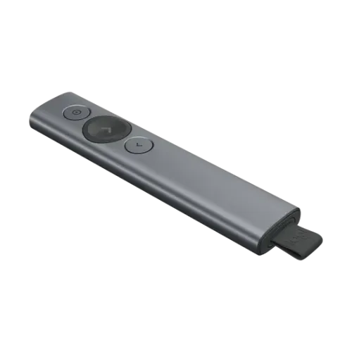 The Logitech Spotlight Wireless Presentation Remote offers three advanced pointing modes. Highlight creates a spotlight effect to focus attention. Magnify zooms in on key details. Digital Laser pinpoints specific content with precision. These features work across projectors, TVs, video conferencing setups, and multiple screens. Whether you're presenting in person or online, Spotlight helps you engage your audience. This wireless presenter is perfect for professionals who need clear visual control. Logitech Spotlight makes your message stand out with smart on-screen interaction.