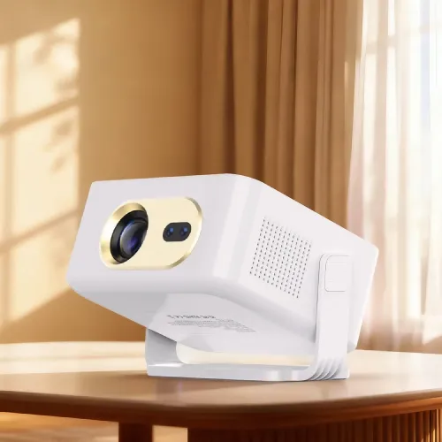 The Magcubic HY300GT 260 ANSI Android Projector is a lightweight and multipurpose smart projector ideal for home entertainment, gaming, and presentations. It has a native 720P resolution and support for 720p and 2K decoding, ensuring seamless playback with no compatibility difficulties. With 260 ANSI lumens of brightness and a 2000:1 contrast ratio, this projector provides crisp visuals and increased color depth in low-light conditions. The 0.8:1 throw ratio enables large screen projection in compact rooms, and projection sizes range from 40 to 130 inches, with optimal clarity at 80 inches. The HY300GT, like its siblings, features a unique 180° rotating design that allows for variable viewing angles on walls or ceilings. It operates on a licensed Google TV running Android 14, with a clean design and built-in apps such as Netflix, YouTube, and Disney+, as well as voice search via the remote. Wi-Fi 5 dual band compatibility and Bluetooth 5.0 for wireless audio devices and accessories ensure seamless connectivity. The projector employs manual focus mode for accurate image adjustment and has keystone correction with vertical auto and horizontal manual settings for optimum alignment. This lightweight and compact Android projector, weighing only 0.575kg, is convenient to transport between rooms or take on trips. The Magcubic HY300GT smart projector combines a compact size, high brightness, smart streaming features, and flexible projection to provide an all-in-one entertainment solution.