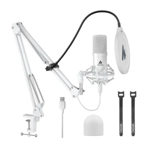 The microphone kit includes a pop filter, shock mount, and windscreen foam to minimize plosives and environmental noise. Combined with double noise reduction technology, the Maono AU A04 Gen2 Condenser Microphone ensures clean audio even in less controlled environments.