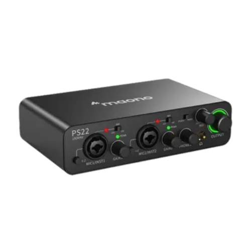 closeThe Maono PS22 Type-C Audio Interface is a powerful and portable solution designed for creators who need professional-grade performance for recording, streaming, and music production. Engineered to support both XLR condenser and dynamic microphones, the Maono PS22 delivers up to 60dB of clean gain through its premium mic preamps, ensuring warm, detailed, and noise-free audio for vocals, podcasts, guitar, and other instruments. Ideal as a Maono PS22 Audio Interface for Recording, Music Production, Guitar, it offers 24-bit/192 kHz high-resolution audio for pristine clarity and depth in every session. With a flexible 2-in/2-out configuration, dual combo XLR/Instrument/Line-In inputs, and two virtual channels, this interface adapts easily to a wide range of studio and mobile setups. Its dual USB-C connectivity allows seamless connection to both PC and phone at the same time, making it perfect for live streaming and content creation. The PS22 also features 11 sound pads, 6 reverb effects, built-in noise reduction, and voice FX, supported by up to 8 hours of battery life for uninterrupted recording. Paired with intuitive routing and monitoring software, the Maono PS22 Type-C Audio Interface offers precise control, creative versatility, and premium sound quality for modern creators.