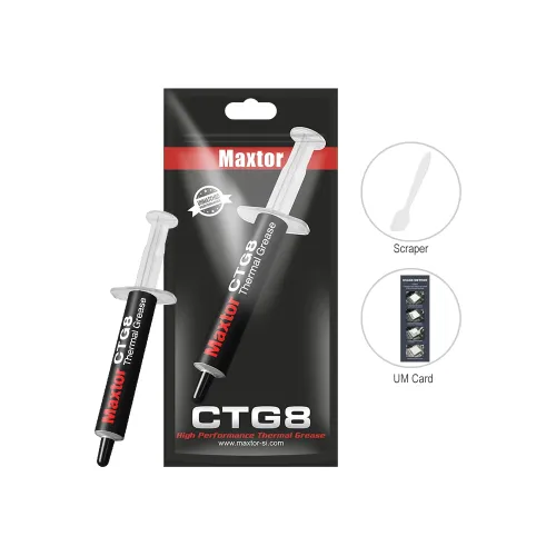 The Maxtor CTG8 4g High Performance Thermal Paste is designed for efficient heat transfer for demanding computing systems. The Maxtor Thermal Paste offers an impressive thermal conductivity of 12.8W/mk and a smooth viscosity of 85000mPa. Ensure consistent and uniform covering between your processor and heatsink. The grey substance has a density of 2.8g/mL, allowing for precise application with minimal spread or waste. Maxtor CTG8 Thermal Paste is ideal for high-performance desktop computers, gaming systems, and mining equipment. Maxtor Thermal Paste works successfully in temperatures ranging from -50℃ to +250℃. Endure limit temperatures range from -50℃ to +270℃, providing consistent thermal stability during heavy workloads. Maxtor Thermal Paste is certified to Reach, Rohs, and MSDS standards, giving users confidence in their safety and the environment. The Maxtor CTG8 4g Thermal Paste has an extended shelf life of up to 5 years. It is suited for future maintenance and improvements. Whether you are installing a new system or increasing cooling efficiency. Maxtor CTG8 Thermal Paste provides balanced performance, durability, and consistent heat dissipation. It is an excellent alternative for enthusiasts and professionals that need constant thermal management.