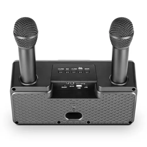 The Microlab KTV100 Bluetooth Karaoke Speaker is a compact and powerful wireless mini karaoke speaker designed for family entertainment, small parties, and indoor or outdoor fun. Despite its small size, it delivers impressive stereo sound with 20W output (10W × 2), providing clear vocals, balanced mids, and enjoyable bass performance. This portable Bluetooth karaoke speaker with a microphone supports multiple playback options, including Bluetooth, USB, TF card, and 3.5mm line-in, allowing you to easily connect smartphones, laptops, or other media devices. It comes with two U-band wireless rechargeable microphones, enabling smooth and stable voice transmission for duets and group performances anytime. Designed for convenience, the KTV100 features a built-in lithium battery, making it ideal for outdoor use without the need for constant power. Users can easily switch between music mode and karaoke mode, while the auto-connect wireless microphones ensure quick setup and hassle-free operation. With its lightweight and portable design, simple controls, and plug-and-play functionality, the Microlab KTV100 is an excellent choice for users looking for an affordable Bluetooth karaoke speaker with dual microphones and versatile connectivity.