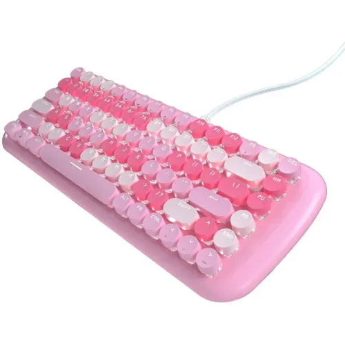 The MOFII Candy M Wired Mechanical Gaming Keyboard combines retro aesthetics with modern mechanical precision. Featuring a compact 84-key layout, this keyboard saves desk space without compromising usability, offering 11 multimedia shortcut keys via the Fn function for quick access to essential commands. Its mechanical switches, available in tactile blue variants, are rated for up to 50 million keystrokes, ensuring long-lasting durability and responsiveness ideal for intense gaming sessions or fast-paced typing. The double-injection keycaps resist fading and wear, while the single-color LED backlighting enhances visibility and ambiance in low-light environments. With 26-key anti-ghosting, users can execute complex key combinations without input errors, a critical feature for competitive gaming. The MOFII Candy M keyboard connects via a 1.8-meter PVC USB cable with a ring filter for stable, interference-free performance. The MOFII Candy M Wired Keyboard adds a splash of personality to any setup. Compatible with Windows systems, it’s a plug-and-play device that requires no additional software, making setup effortless. Whether you're a gamer, designer, or typist, the MOFII Candy M Mechanical Keyboard delivers a perfect blend of style, speed, and reliability.
