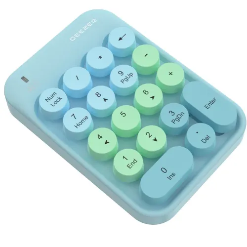 The Mofii GEEZER Z5 Wireless Numerical Keypad is the perfect companion for daily tasks. Featuring 18 round keys with mixed injection colorful keycaps, it combines style with functionality for a visually appealing and tactile experience. The keypad includes a sync function for seamless pairing and a connection/low power indicator to keep you informed at all times. Compact yet powerful, its dimensions are 128×89×27mm, while the USB receiver measures just 19×15.5×7mm, making it ideal for travel or minimalist setups. Powered by a single AAA alkaline battery, it offers reliable wireless performance without the hassle of frequent charging. Whether you're working from home, in the office, or on the go, this Mofii GEEZER Z5 portable wireless number pad delivers convenience, style, and efficiency in one compact device.