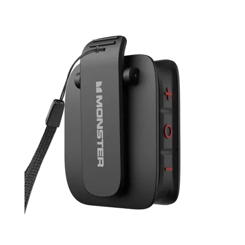 For daily use, the Monster Blaster Micro includes a magnetic base that attaches securely to metal surfaces, offering quick and stable placement. It also features a magnetic clip for attaching the speaker to clothing, bags, or other gear, making it easy to carry on the go. The mini body weighs just about 80g, making it extremely portable and easy to fit in your hand or pocket. The soft TPE material adds a skin‑friendly feel, while the bright aluminum anodized logo gives the Monster Blaster Micro speaker a premium look.