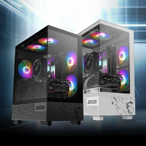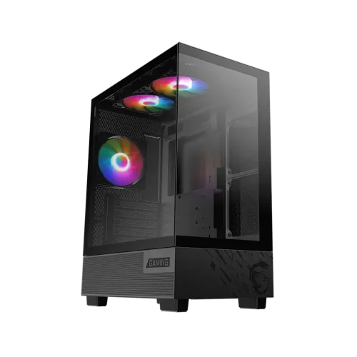 The MSI PAG PANO M110A Gaming Casing is a high-performance Micro-ATX mid-tower chassis designed for gamers and PC enthusiasts who want style and functionality in one package. This versatile case supports Micro-ATX and Mini-ITX motherboards, making it ideal for compact yet powerful builds. Featuring a 270-degree panoramic tempered glass side panel, the MSI PAG PANO M110A Black Gaming Casing offers a stunning view of your internal components and RGB lighting. It comes with three pre-installed 120mm RGB fans—two on the top and one at the rear—to ensure optimal airflow and vibrant illumination. The front panel also features tempered glass for a sleek, modern look. The MSI PAG PANO M110A Casing includes convenient I/O ports, such as two USB Type-A ports, one USB 5Gbps Type-A, an audio-out/mic-in jack, a reset button, and a power button, giving easy access to essential functions. Measuring 369 x 210 x 448 mm (D x W x H), it offers ample space for high-performance components, supporting graphics cards up to 330mm, CPU coolers up to 160mm, and ATX power supplies up to 160mm in length. Additional features include one 2.5” and two 3.5” drive bays, five expansion slots, and extensive radiator support for advanced cooling setups. With its clean white finish, tempered glass panels, and versatile cooling and expansion options, the MSI PAG PANO M110A is the perfect choice for gamers seeking both aesthetics and performance in a Micro-ATX mid-tower gaming casing.