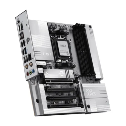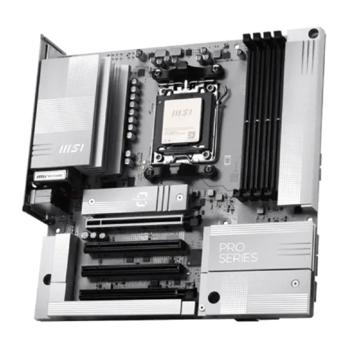 The MSI PRO B850M-A WIFI PZ AM5 mATX Motherboard is built to deliver outstanding reliability, speed, and performance for modern PC builders and gaming enthusiasts. Supporting AMD Ryzen 9000, 8000, and 7000 Series desktop processors, this MSI AM5 Motherboard offers exceptional power efficiency and overclocking potential through its robust Direct 8+2+1 Power System with 60A SPS and 8+4-pin CPU connectors. Engineered with a 6-layer PCB made from 2oz thickened copper and server-grade materials, the MSI PRO B850M-A WIFI PZ Motherboard ensures stable power delivery and thermal performance under heavy workloads. It supports dual-channel DDR5 memory with speeds up to 8200+ MT/s (OC), enabling lightning-fast data processing and multitasking capabilities. The Frozr Guard thermal design features extended heatsinks, 7W/mK MOSFET thermal pads, choke thermal pads, and an M.2 Shield Frozr to maintain consistent cooling for high-performance components. The MSI PRO B850M-A WIFI PZ AM5 mATX Motherboard also brings cutting-edge connectivity with PCIe 5.0 support and Lightning Gen 5 x4 M.2 slots, providing ultra-fast storage and expansion options for gamers and professionals. It includes Realtek 8126 5G LAN and the latest Wi-Fi 7 technology for secure, high-speed networking, making it ideal for gaming, content creation, and productivity. With user-friendly EZ DIY features such as EZ M.2 Clip II, EZ PCIe Clip II, and EZ Antenna setup, building with this MSI Motherboard is straightforward and efficient. Audio Boost technology delivers immersive studio-grade sound, while multiple USB 10Gbps Type-C and Type-A ports offer versatile connectivity. Compact yet powerful, the MSI PRO B850M-A WIFI PZ AM5 mATX Motherboard embodies durability and innovation with its military-grade components, RGB support, and Windows 11 compatibility. For anyone seeking a dependable MSI BTF Motherboard that blends performance, efficiency, and future-ready technology, the MSI PRO B850M-A WIFI PZ Motherboard stands as an exceptional choice for next-gen PC builds.
