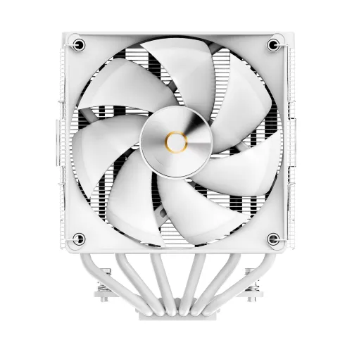 The Ocypus Delta A62 WH ARGB Dual Tower Air CPU Cooler is designed to keep your CPU cool and stable. This Ocypus Dual Tower CPU Cooler can handle a TDP of 260W, which helps keep temperatures down even when the CPU is working hard. This means that it is a good choice for today's CPUs. The Ocypus Delta A62 WH ARGB Dual Tower CPU Cooler boasts two high-performance fans that spin between 500 and 2000 RPM with a dual tower heatsink configuration. These are the most important parts of its cooling system. These fans move up to 73 CFM of air and create 4.3 mmH2O of air pressure. This helps move heat through the radiator quickly and keeps noise levels at or below 29 dB(A). Halfway through the design of the Ocypus Delta A62 WH ARGB CPU Cooler are fans with hydraulic bearings. These fans make the cooler last longer by making it stronger and letting it spin freely. The ARGB lighting makes your system seem nicer without making it difficult to set up. You can modify the effects via a 3-pin, 5V connector. The Ocypus Delta A62 WH ARGB Dual Tower Air CPU Cooler boasts a unique radiator design and a sturdy build that keeps it stable and cool for a long period. You can easily install it because it works with Intel LGA 115X, 1200, 1700, and 1851 sockets and AMD AM4 and AM5 sockets. The Ocypus Delta A62 WH ARGB Dual Tower Air CPU Cooler fits neatly into many different types of PCs, whether you're upgrading or building a new one. The 12V DC fan power and 5V DC ARGB lighting keep the device running well without using too much power, which is a good compromise between performance and energy use.
