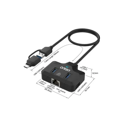 The Onten OTN-UCA5311 5-in-2 USB Hub with LAN Adapter is a flexible and reliable solution for expanding connectivity, designed to meet modern demands with efficiency and ease. Featuring four USB 3.0 ports, it delivers super speed 5Gbps transmission, while maintaining downward compatibility with USB 2.0 and 1.1 standards. The Onten OTN-UCA5311 supports a 5 in 1 USB-C and USB 3.0 hub configuration, with 3x interfaces dedicated to fast data transfer and 1x interface for 5V charging, making it ideal for multitasking. Built-in over-current and short circuit detection ensures safe usage, while excellent heat dissipation enhances durability during extended operation. The RJ45 network card supports 1000M/100M/10M standards, providing stable wired internet connectivity for seamless browsing and streaming. With its drive-free installation, the Onten OTN-UCA5311 offers true plug-and-play convenience, eliminating the need for additional drivers. Compact, handy, and portable, it is perfect for professionals, students, and travelers who require reliable connectivity on the go. Compatible with Mac OS, iOS, Windows, and Android systems, this hub ensures broad device support, making it a universal accessory for laptops, tablets, and smartphones. Whether you need fast data transfer, secure charging, or stable LAN connection, this hub delivers all-in-one functionality in a sleek design. Its protective features and high-speed performance make it a must-have accessory for anyone seeking efficiency and safety in daily digital tasks.