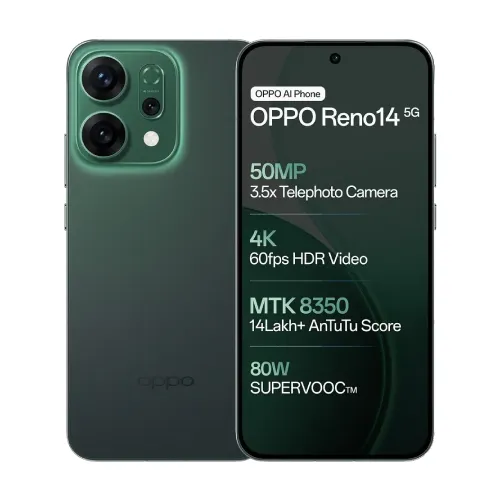 The OPPO Reno14 is a premium next-generation smartphone that combines stylish design with superior performance. The OPPO Reno14 Smartphone has a magnificent 6.59-inch FHD+ AMOLED display with a smooth 120Hz refresh rate, delivering brilliant graphics at a crisp resolution of 1256 x 2760 pixels, with 600 nits normal and 1200 nits HBM brightness. Its screen is safeguarded by Corning Gorilla Glass 7i or Crystal Shield Glass, ensuring lasting durability. At its core, the OPPO Reno14 Mobile is powered by the advanced Mediatek Dimensity 8350 (4nm) chipset and an octa-core processor, supported by Mali G615-MC6 GPU, enabling seamless multitasking, gaming, and streaming. It boasts 12GB LPDDR5X RAM and 256GB UFS 3.1 storage, offering high-speed performance without the need for a memory card. Photography is a major highlight of the OPPO Reno14, featuring a triple rear camera setup with dual 50MP wide and telephoto lenses and an 8MP ultrawide sensor, capable of 4K video recording and enhanced by gyro-EIS, OIS, HDR, and color spectrum sensor. Its 50MP front camera also supports 4K video, panorama, and HDR, ideal for selfies and content creation. Running on the latest Android 15 with ColorOS 15, the OPPO Reno14 5G offers a user-friendly and responsive interface. With dual stereo speakers, Bluetooth 5.4, Wi-Fi 6e, dual-SIM 5G, NFC, and USB Type-C with OTG, it’s built for connectivity. The OPPO Reno14 Smartphone also impresses with its 6000mAh battery, 80W wired fast charging, 13.5W PD, and 33W PPS support, along with reverse wired charging. Its under-display fingerprint sensor, IP68/IP69 water and dust resistance, and advanced sensors enhance functionality and security. Slim and stylish, the OPPO Reno14 Mobile weighs just 187g and measures 7.3mm thick, making the OPPO Reno14 a true all-rounder in design, innovation, and performance.