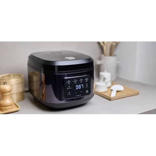 closeThe Panasonic SR-DA182 Rice Cooker is designed to deliver perfectly cooked rice with convenience and style. Featuring a 10-cup capacity, this high-performance cooker runs on 770W power with a lid heater and operates smoothly on a 230–240V supply. Its LED display and built-in buzzer make cooking effortless, while the 1 m power cord ensures flexible placement in your kitchen. The highlight is its Binchotan Charcoal inner pot with a non-stick coating, enhanced by a gold-coated exterior and a 1.2mm thickness for even heat distribution and durability. Crafted with a sturdy plastic and metal body, the cooker includes a steam cap for safe steaming, a 24-hour timer, and an impressive keep-warm function that lasts up to 24 hours ideal for busy households. With its blend of advanced technology and elegant design, the Panasonic SR-DA182 makes rice preparation simple, efficient, and reliable every time.