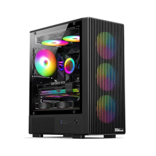 The PC Power Air X Mesh BK mATX Gaming Casing supports both Micro ATX and Mini ITX motherboards, ensuring flexibility for compact builds. The PC Power Gaming Casing features a sturdy structure made from 0.45mm SPCC steel, providing durability and stability for long-term desktop use. A tempered glass side panel window on the PC Power Casing allows users to showcase internal components and RGB lighting. PC Power Air X Mesh BK mATX Mid Tower Gaming Casing includes a practical front I/O panel with two USB1.0 ports and one USB3.0 port. The front panel also integrates HD audio connectivity, giving convenient access for headphones and microphones during gaming, streaming, or everyday computer tasks. PC Power Casing design includes dedicated power switch, reset switch, and fan or LED control switch for improved hardware management. With five PCI expansion slots, PC Power Air X Mesh BK mATX Gaming Casing offers enough expansion capability for graphics cards, capture cards, and additional components. PC Power Casing supports powerful hardware, allowing installation of graphics cards up to 320mm length for modern gaming GPUs. The PC Power Air X Mesh BK Casing also supports CPU cooler heights up to 165mm, enabling compatibility with many high-performance air cooling solutions. Efficient airflow is a key strength of PC Power Gaming Casing, supporting multiple cooling configurations. Storage options in PC Power Air X Mesh BK Gaming Casing include one 3.5-inch HDD bay and two 2.5-inch SSD bays.