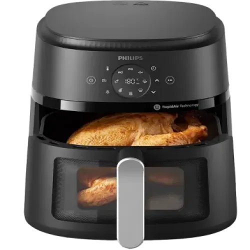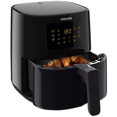 The Philips 5000 Series Digital WiFi Connected Smart Airfryer is a versatile, multifunctional kitchen companion designed to simplify mealtime. This all-in-one air fryer combines Rapid Air technology for crispy results with up to 90% less fat, making guilt-free indulgence a daily delight. With a generous 4.1-liter pan capacity, it effortlessly prepares up to four portions in one go, perfect for families or entertaining guests. The intuitive touch screen interface offers 7 pre-set cooking programs, allowing you to fry, bake, grill, roast, and reheat with a single tap. Stay connected and in control from anywhere using the HomeID app, enabling remote monitoring and smart notifications. Compatible with Amazon Alexa, it brings voice-activated convenience to your kitchen. Discover endless culinary inspiration from professional chefs and fellow NutriU users, ensuring every meal is a masterpiece. Engineered for time and energy efficiency, the Philips HD9255/90 also features QuickClean technology and dishwasher-safe removable parts for hassle-free cleanup. With 1400W power consumption and AC 220V requirement, this Philips air fryer is a smart, stylish, and sustainable choice for modern homes.