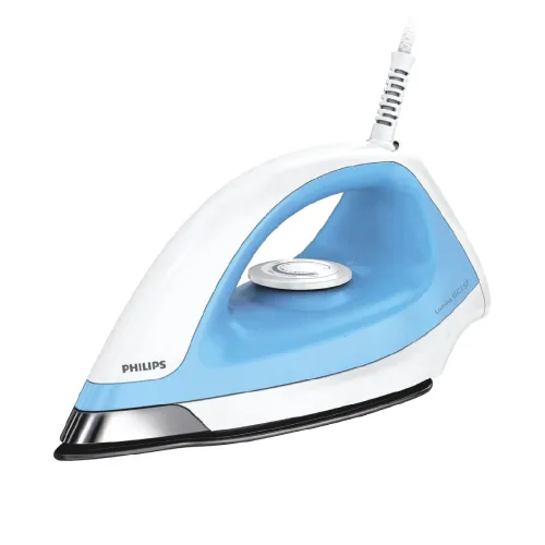 The Philips GC157/02 Dry Iron delivers strong 1100W heating power for quick warm-up and consistent temperature control. This ensures crisp, wrinkle-free clothes with minimal effort. Its Black American Heritage soleplate features a premium non-stick coating, allowing smooth gliding across different fabrics. The cast-in soleplate technology enhances durability and long-lasting performance. The precision pointed tip helps reach tricky areas such as collars, pleats, and seams. The Philips GC157/02 Dry Iron design ensures neat finishing on every garment. Weighing only 800 grams, the iron is lightweight and ergonomically crafted for comfortable handling during extended ironing sessions. The 1.8m swivel cord provides flexible movement and better reach, reducing strain while ironing. Safety is prioritized with fabric-friendly temperature control, protecting clothes from overheating. Philips’ trusted build quality ensures reliable performance for years. With a stylish blue finish, compact design, and user-friendly features, this Philips GC157/02 Dry Iron is a smart choice for households seeking efficiency and comfort.