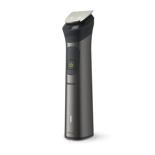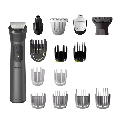 The Philips MG7940/15 7000 Series 15-in-1 Trimmer is a professional grooming tool that can be used to style your face, head, and body. This all-in-one Philips Trimmer features fifteen quality styling tools that allow you to craft your personal look with professional accuracy and ease. The Philips MG7940/15 7000 Series Trimmer utilizes BeardSense technology to scan beard density 125 times per second, boosting power exactly when needed for dense beards. High-quality self-sharpening stainless steel blades require no oil and always remain sharp for long-lasting performance and consistent results every time you groom. Your Philips MG7940/15 Trimmer includes a patented precision comb offering eleven length settings between one and three millimeters for an even trim. This styling system provides twenty-two versatile length settings from 0.5 to 16 mm with 0.2 mm precision steps for short or long beard styles. The extra-wide forty-one millimeter hair clipper cuts thirty percent faster, utilizing four dedicated wide hair combs at 4, 9, 12, and 16 mm. With Philips MG7940/15 Trimmer, safely remove unwanted hair with the nose and ear attachment, then maintain tidy eyebrows using the dedicated styling comb included in this kit. The body shaver features a unique skin-protection system to guard sensitive areas while shaving as close as 0.5 mm below your neck safely. A lithium-ion battery offers 120 minutes of cordless runtime with a useful five-minute quick charge option for maximum power and long life daily. Charge the Philips MG7940/15 7000 Series 15-in-1 Trimmer via USB-A and accurately monitor status with the battery low, full, and charging indicator display. The ergonomic rubber grip ensures control while the 100% showerproof design allows for easy cleaning under any running tap water after use.