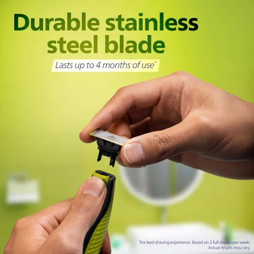 The Philips OneBlade QP2724/10 Trimmer & Shaver can trim, edge, and shave comfortably and precisely. The Philips Trimmer cuts hair well and protects skin at the same time thanks to its unique OneBlade Technology. The two-sided blade is made for accuracy and control, making it easy to make straight lines. The Philips OneBlade Trimmer has contour-following technology that makes it easy to make regular contact with the face. Its dual safety system makes shaving more comfortable and ensures that trimming and shaving work well. The Original Blade that comes with the Philips QP2724/10 Trimmer is made to cut hair, not skin. You can trim your beard to 1 mm, 3 mm, or 5 mm with the 5-in-1 adjusting comb and the three click-on stubble combs. This Philips Trimmer lets you style your beard in a variety of ways, from short stubble to a fuller beard. It can be used wet or dry, even without shaving foam in the shower because it is completely waterproof. The head can be washed and rinsed right under the tap to make cleaning easy. The Philips OneBlade QP2724/10 Trimmer & Shaver has a comfortable grip that makes it easy to hold and control precisely. A secure cap is included to keep the blade safe while it is being stored or transported. After being fully charged for 8 hours, the Ni-MH battery can run for up to 45 minutes. The device is easy to power on and off because it supports automatic 5V voltage and USB-A charge. The maximum power use of 0.5W makes sure that the device works efficiently during every cleaning session. USB-A charging at 5V makes sure that it works with standard adapters that are rated at least 1A. The Philips OneBlade QP2724/10 Trimmer is a good choice for shaving because it's long-lasting, well-designed, and uses reliable technology.