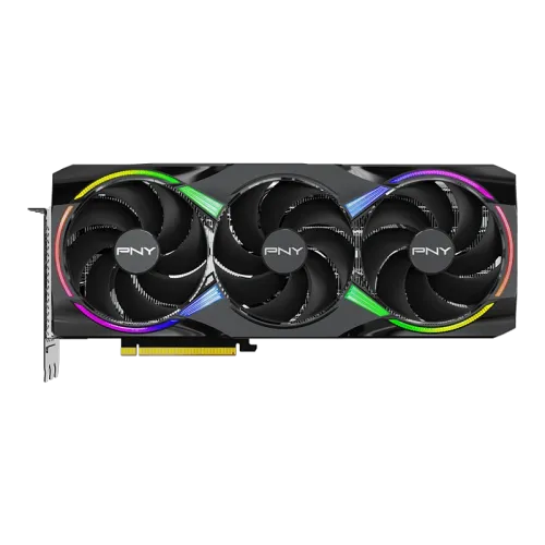 The PNY GeForce RTX 5070 Ti EPIC-X RGB Overclocked Triple Fan Plus Graphics Card is powered by the NVIDIA Blackwell architecture and has an impressive 8960 CUDA cores with a base clock speed of 2295 MHz and a boost speed of up to 2640 MHz, delivering smooth performance for gaming, rendering, and professional workloads. This PNY RTX 5070 Ti GPU has 16GB of next-generation GDDR7 memory running at 28Gbps over a broad 256-bit interface, enabling up to 896GB per second of memory bandwidth for rapid data throughput and steady frame rates. The PNY RTX 5070 Ti Graphics Card, which has a total graphics power and TDP of 300W, uses a 16 pin power input via one 16 pin to three 8 pin connector layout and requires a system power supply of 750W or more. The PNY Graphics Card installs via a PCI Express 5.0 x16 bus and is compatible with PCI Express motherboards that have one three-width x16 graphics slot. Display connectivity features three DisplayPort 2.1b connectors and one HDMI 2.1b port, which can support up to four displays at once and give resolutions of up to 4K at 480Hz or 8K at 165Hz with DSC. Cooling is handled by an innovative EPIC-X RGB Overclocked Triple Fan Plus design that ensures efficient thermal regulation while also providing programmable RGB illumination. The PNY GeForce RTX 5070 Ti EPIC-X RGB Overclocked Triple Fan Plus Graphics Card is compatible with Windows 11 64 bit, Windows 10 64 bit, and Linux 64 bit. Drivers require an internet connection.