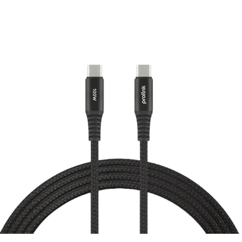 closeThe PROLiNK GCC-100-01 Type-C to Type-C Cable features Enjoys speed, style, and strength with 100W Power Delivery and 480Mbps transfer speed. Charge your smart devices and even laptops, as well as transmit photographs, music, and data to your current USB-C-enabled devices, all with a single connection. This cable is quicker than ever! Transferring large files or downloading your favorite music album is now a pleasure thanks to the incredible 480Mbps data transfer speed. With QC4.0 Fast-Charging, you may charge your devices in less time. With 100W Power Delivery 3.0 and QC4.0 Fast-charging for any Type-C compatible device, such as your favorite Android smartphones, tablets, and laptops, you can enjoy faster and more reliable charging. With its simple and user-friendly reversible connector, it's no wonder that this USB port is becoming increasingly popular among smartphones, tablets, laptops, and other devices. This tough 2-meter cable has a stylish aluminum shell casing, a braided nylon outer, and an upgraded strain-relief rubber connection for a break-resistant and tangle-free experience while still connecting your devices from a distance. It has an E-MARK Smart Chip and a Smart protocol controller to secure your safety and avoid power transfer overload, providing you with peace of mind when using this connection. The PROLiNK GCC-100-01 100W Type-C to Type-C Cable comes with a 01-year warranty.