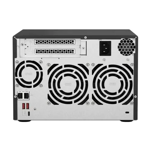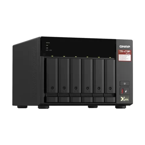 The QNAP TS-673A-8G 6 Bays NAS Storage is a powerful 6-bay NAS storage solution designed for performance and scalability. Featuring an AMD Ryzen Embedded V1500B quad-core processor with 64-bit x86 architecture and AES-NI encryption support. QNAP TS-673A-8G NAS Storage comes with 8GB DDR4 memory, expandable up to 64GB, and includes dual SODIMM slots supporting ECC memory for reliability. The system offers 5GB flash memory with dual boot OS protection, ensuring stability and resilience. It supports both 3.5-inch SATA HDDs and 2.5-inch SATA SSDs, with hot-swappable bays for easy maintenance. Two M.2 PCIe Gen3 slots are available for SSD cache acceleration, though heatsinks are recommended for thermal management. Connectivity options include dual 2.5GbE ports, with optional 5GbE and 10GbE via PCIe expansion, plus Wake-on-LAN and jumbo frame support. Expansion is enabled through two PCIe Gen3 x4 slots, allowing GPU pass-through and optional HDMI output. USB connectivity includes three USB 3.2 Gen2 Type-A ports and one USB 3.2 Gen1 Type-C port, supporting high-speed data transfer. The QNAP TS-673A-8G tower form factor includes LED indicators for system status, drives, LAN, and M.2 SSDs, along with power, reset, and USB auto copy buttons. Dimensions are 180.2 × 264.3 × 279.6 mm, with a net weight of 6.4 kg. Cooling is managed by two 92mm system fans and one 60mm CPU fan, supported by a buzzer for system warnings. Operating temperature ranges from 0–40°C, with storage tolerance from -20–70°C, and humidity support up to 95% non-condensing. Power is supplied by a 250W unit, consuming about 21.9W in standby and 45.9W during typical operation with full drives. Security features include a Kensington lock slot, ensuring physical protection. Overall, the QNAP TS-673A-8G delivers various storage, high-speed connectivity, and expansion flexibility. Its becomes main requirement for demanding business environments and advanced users seeking reliable NAS performance.