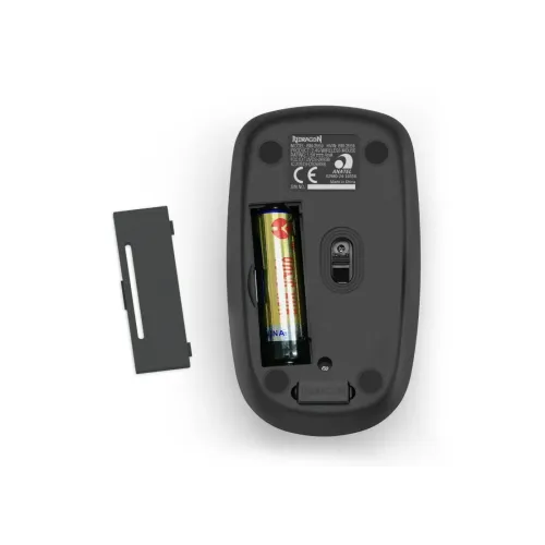 The Redragon Wireless Mouse uses one AA battery, and the battery is included (optional) in the box. Power saving mode helps extend battery life during long work sessions. A low battery reminder and DPI indicator keep you informed at all times. The Redragon BM 2559 Wireless Mouse offers a soft click sound and stable wireless performance for uninterrupted work.