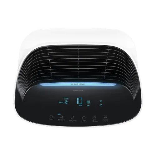 | Others | Multi-layered Purification System with HEPA filter Smart detection & display Remotely Control (SmartThings app) Removes up to 99.97% of 0.3Mum sized dust Multi-Layered Purification System Precise monitoring, intuitive display Numeric Display 4-color Indicatior Laser sensor Hidden Moving Wheel SmartThings Auto Mode / Sleep Mode Space-efficient and easy to maintain Slim Design Filter replacement alarm, timer, child lock. |