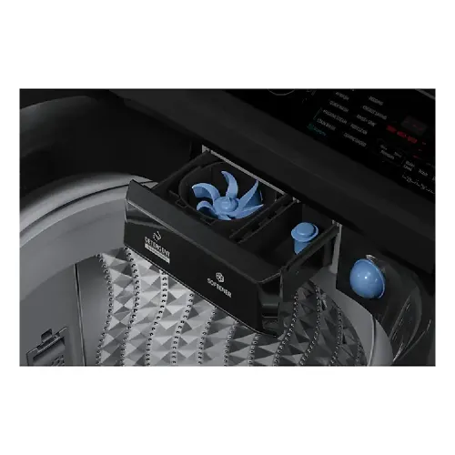 The Samsung WA80F12S5CTL 12KG Inverter Top Loading Washing Machine is a 12KG inverter top loading model built for modern laundry needs. It combines advanced technology with energy efficiency, offering powerful cleaning and smart control. With AI Wash, this washer senses fabric type, weight, and softness, adjusting water levels and settings for 25% better fabric care. Intelligent sensing ensures clothes are cleaned thoroughly yet gently, protecting delicate fabrics while handling heavy loads with ease. The Samsung WA80F12S5CTL Washing Machine features Ecobubble technology with BubbleStorm, allowing detergent to penetrate fabric 2.5x faster. This process uses up to 25% less energy and 13% less water, while Dual Storm creates a strong vortex for effective cleaning. These innovations deliver deeper stain removal and improved fabric protection, ensuring clothes remain fresh and long-lasting. Energy savings are a highlight of the Samsung WA80F12S5CTL Washing Machine. With AI Energy Mode, users can save up to 20% energy through SmartThings app connectivity. The washer intelligently optimizes motor performance, offering smart control and convenience. This feature makes laundry more efficient and eco-friendly, reducing household energy costs. For hygiene, the Samsung WA80F12S5CTL Washing Machine includes Intensive Wash to tackle stubborn stains and Hygiene Steam for deep cleaning. The Magic Filter captures lint and particles, keeping clothes spotless and protecting drainage. Added safety features include child lock, auto restart, and a soft close lid, ensuring ease of use for families. Design is another strength. The washer comes in sleek Black Caviar with a tempered glass door and chrome deco. Its 2nd Diamond drum and STS Dual Storm pulsator enhance performance while maintaining fabric care. With a 5-star energy rating, 700 rpm spin speed, and multiple wash cycles, it offers flexibility for all laundry needs. Overall, the Samsung WA80F12S5CTL Washing Machine delivers powerful cleaning, smart energy savings, and advanced fabric care. It is a smart choice for daily laundry, combining style, efficiency, and innovation in one appliance.