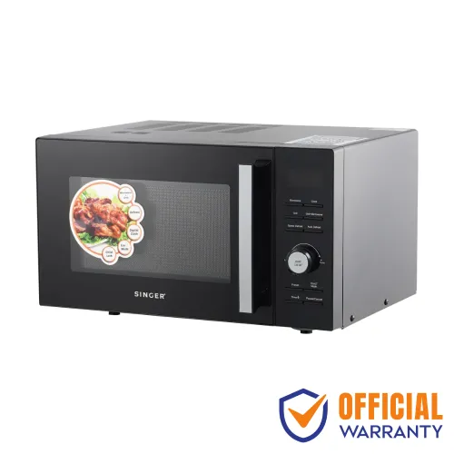 The Singer SMW25GCHLP 25L Grill Microwave Oven is a versatile kitchen essential that blends power, precision, and user-friendly design to elevate your daily cooking experience. With a generous 25-liter capacity, it’s ideal for families or anyone who enjoys preparing larger meals. Whether you're reheating leftovers, defrosting frozen items, or grilling juicy kebabs, this Singer SMW25GCHLP 25L microwave delivers consistent performance with its 900W microwave power and grill functionality—perfect for achieving crispy textures and golden finishes. The pull door design adds ergonomic convenience, while the easy control panel and kitchen timer make operation intuitive for users of all ages. Safety is a priority too, thanks to the built-in child lock, ensuring peace of mind in busy households. The time and weight defrosting feature allows for precise thawing, preserving flavor and texture without overcooking. With a cooking end signal, you’ll never miss a beat, and its sleek black finish adds a modern touch to any countertop. Operating on a standard 230V~ 50Hz voltage, this Singer microwave is engineered for reliability and energy efficiency. Whether you're grilling, heating, or experimenting with new recipes, the Singer SMW25GCHLP Grill Microwave Oven is your all-in-one solution for smart, stylish, and safe cooking.