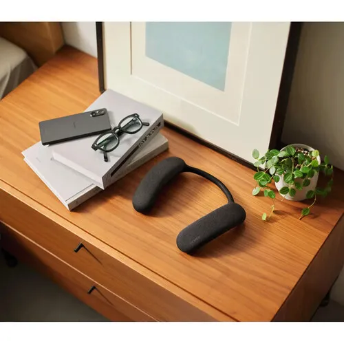 The Sony HT-AN7 Bravia Theater U Wearable TV Speaker transforms personal audio through its groundbreaking wearable concept and enveloping sound quality. Built with comfort and audio precision in mind, it incorporates dual full-range drivers and a customizable 5-band equalizer offering 31 different volume levels, enabling users to personalize their listening experience. Despite its compact form factor, weighing only 9.45 oz, it maintains substantial dimensions to ensure a stable and comfortable fit. Featuring Bluetooth 5.2 technology, voice-free operation, and compatibility with premium audio codecs including LDAC, AAC, and SBC, it delivers reliable wireless connectivity through its 2.4 GHz frequency range. The HT-AN7 comes equipped with USB Type-C connection ports and works seamlessly with Sony's Headphones Connect and 360 Spatial Sound Personalizer applications to create customized audio experiences. Built for daily usage, Bravia Theater U provides IPX4 water protection and delivers up to 12 hours of continuous playback per charge, establishing it as an ideal choice for marathon viewing sessions, gaming adventures, or music enjoyment with theater-quality sound and portability.