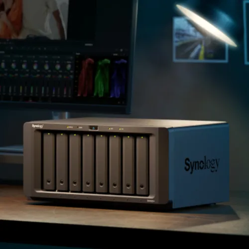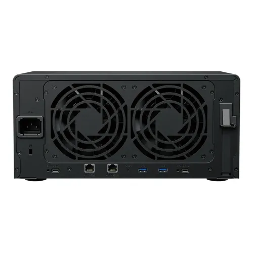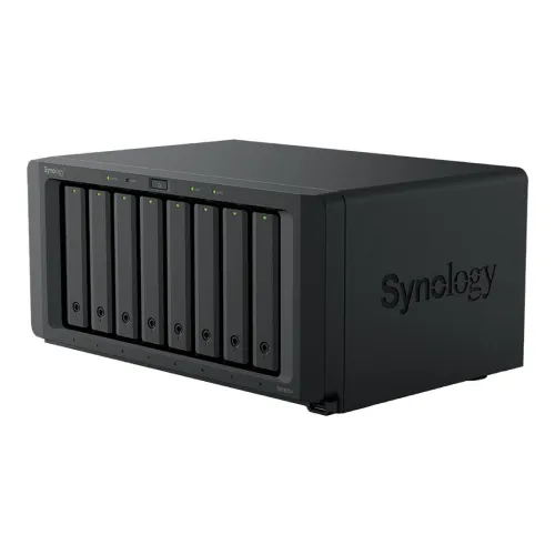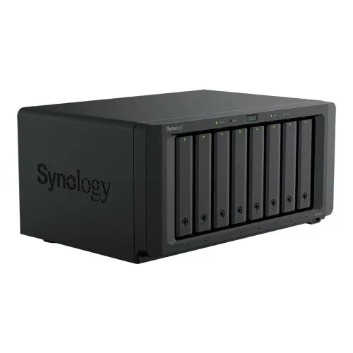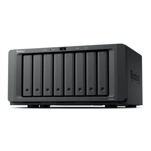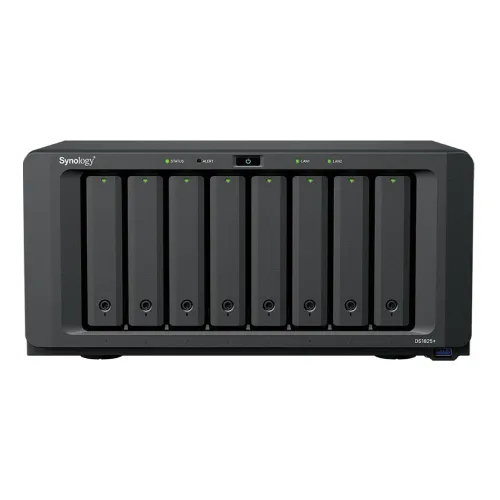 The Synology DiskStation DS1825+ NAS Enclosure has eight 2.5-inch or 3.5-inch SATA drive bays and two M.2 2280 NVMe SSD slots, providing adequate space for high-capacity storage and rapid caching options. The device is powered by a 2.2 GHz AMD Ryzen V1500B quad-core processor and 8GB of user-replaceable ECC DDR4 RAM that can be expanded up to 32GB. This hardware foundation enables the Synology DiskStation DS1825+ 8-Bays NAS Enclosure to achieve outstanding transfer speeds of up to 2239 MB/s read and 1573 MB/s write, making it ideal for virtualization, multimedia editing, and massive data sharing. The system supports popular RAID modes including as RAID 0, 1, 5, 6, 10, Basic, JBOD, and Synology Hybrid RAID, giving users greater freedom in how they safeguard and organize their data. The Synology DiskStation DS1825+ 8-Bays NAS Enclosure has dual 2.5GbE RJ45 ports with link aggregation and failover support, three USB-A 3.2 Gen 1 connections, and two USB-C expansion connectors for increased adaptability. A PCIe 3.0 x8 slot that operates at x4 electrical allows for network interface card or storage upgrades. The Synology DiskStation DS1825+ NAS Enclosure uses the Synology DSM operating system, which includes a variety of productivity, backup, virtualization, and security applications. Hardware-based AES-NI encryption, a lockable bay door, and a Kensington security slot improve system security. The Synology DiskStation DS1825+ NAS Enclosure supports Windows, macOS, Linux, Android, and iOS, and it smoothly fits into any environment. With a 250W PSU, dual 120mm fans, and a low 23.8 dBA noise level, the gadget provides silent performance.