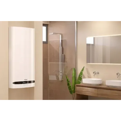 The TESY BelliSlimo 30L Geyser is a perfect solution for modern homes, combining sleek design with intelligent performance. With a slim silhouette of just 28 cm in depth, this flat-design water heater fits effortlessly into compact spaces while delivering powerful heating capabilities. Featuring dual copper heating elements and two separate water tanks, it ensures rapid and efficient water heating tailored to your needs. The innovative Work on Demand mode calculates the exact time required to heat water, while the Eco Smart mode self-trains to optimize energy usage, earning it a top-tier Energy Class B rating. Whether mounted vertically or horizontally, its reversible installation offers unmatched flexibility. Enjoy a quick first shower, boost function for faster heating, and vacation mode for energy savings when you're away. The reverse counter display keeps you informed as it counts down to your desired temperature, reaching up to 79°C. With a rated power of 1200/2200W and a heating time of just 1 hour and 5 minutes for a 45K temperature rise, the TESY BelliSlimo delivers performance and convenience. Ideal for households seeking smart water heating with minimal energy consumption (482/493 kWh annually), this TESY BelliSlimo 30L water heater is the perfect blend of style, technology, and sustainability.